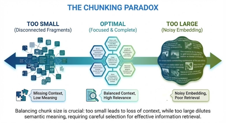 The goal: chunks small enough to retrieve precisely, but complete enough to give the LLM sufficient context for generation.