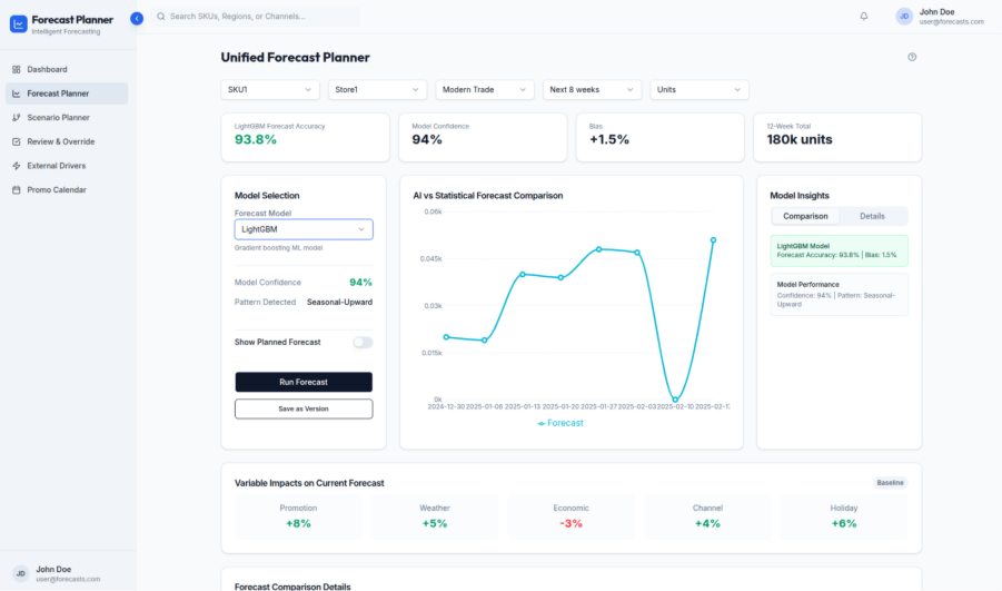 - UI dashboards for planners: Intuitive interfaces for demand sensing.